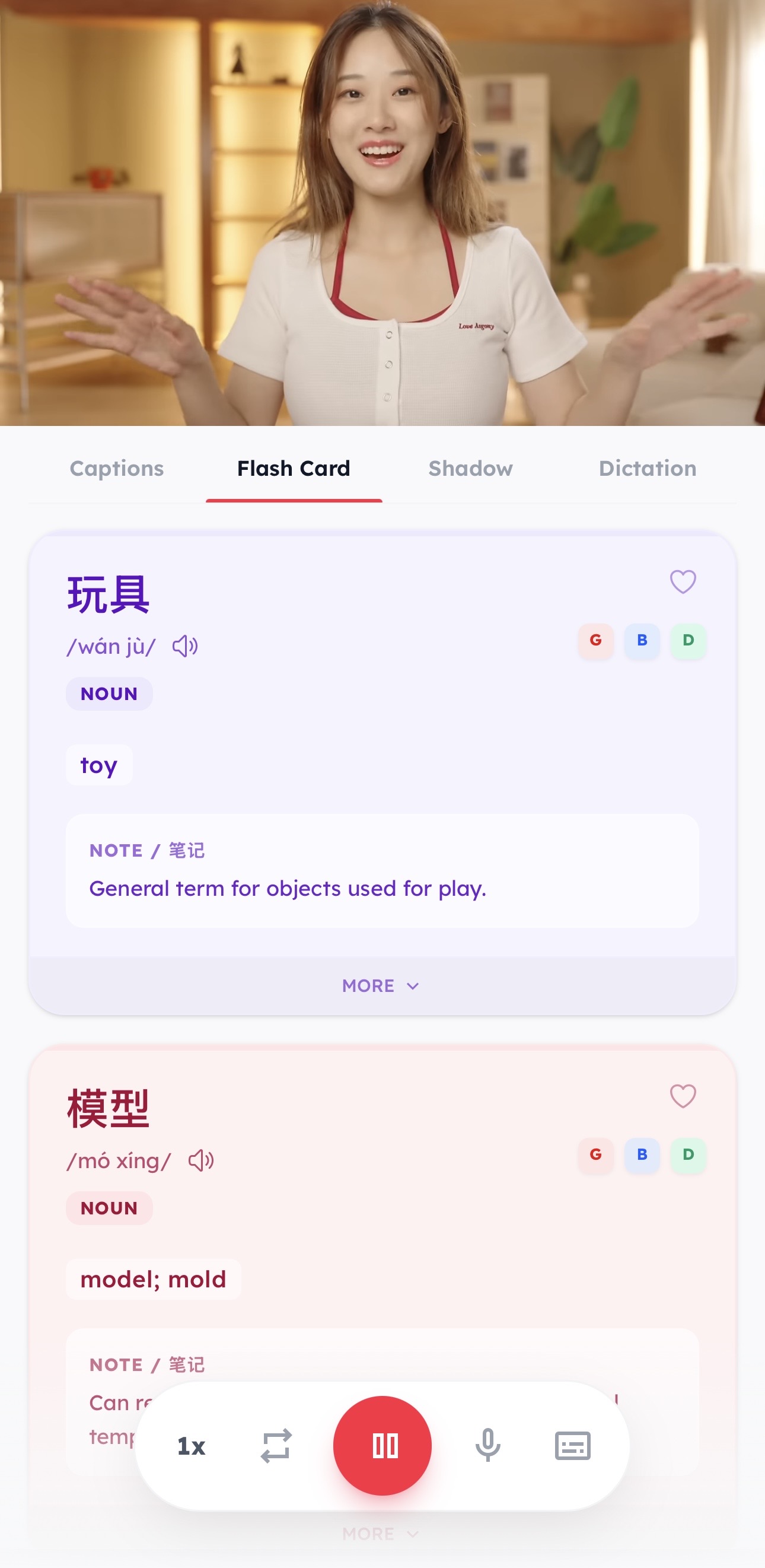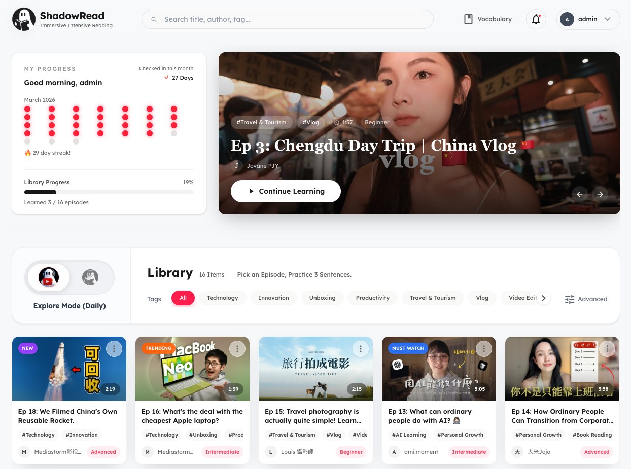 Learn at your own pace. Shadow native speakers, practice dictation, and grasp how words are truly used in actual scenes.